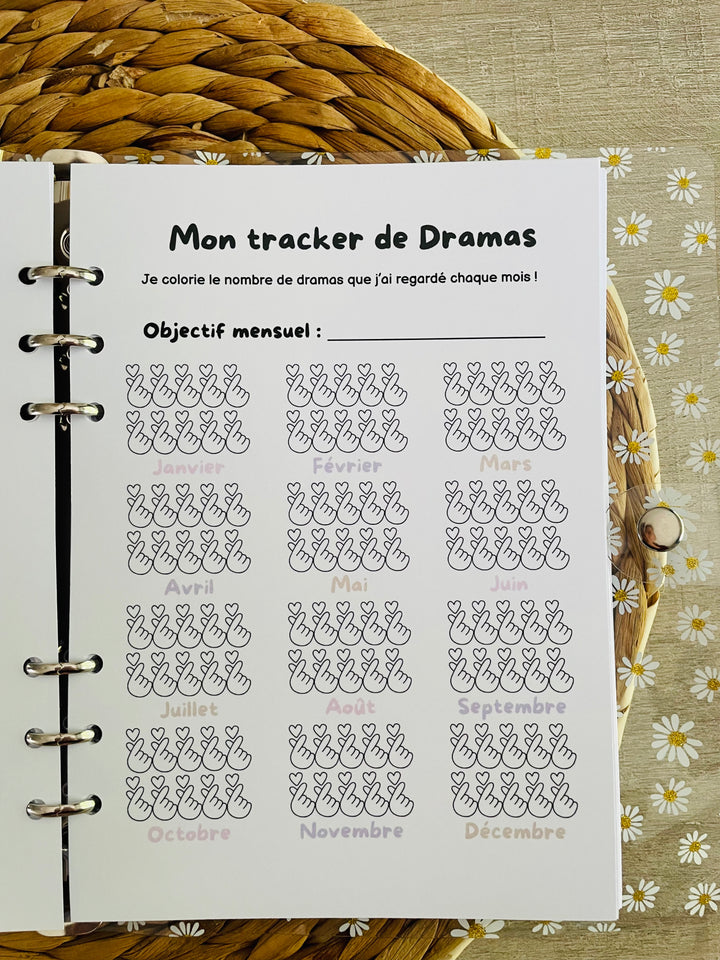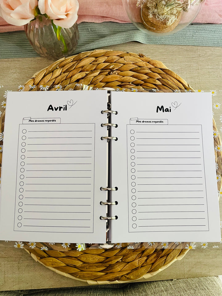 - 6 fiches recto-verso pour noter chaque mois les drames que tu as regardés