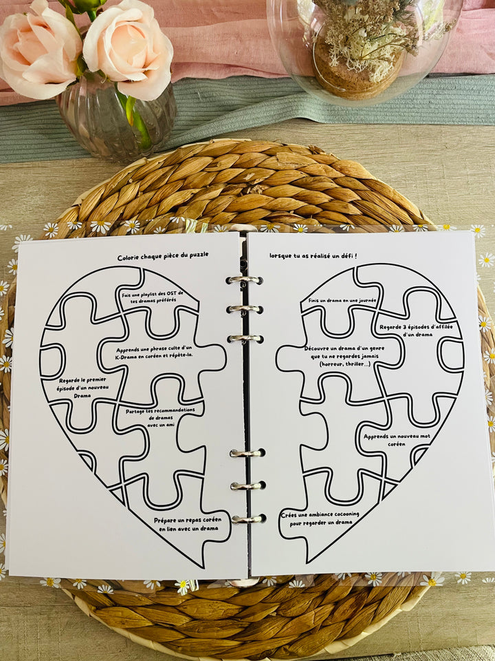 Une double page 'coeur Puzzle" avec des défis à réaliser !
