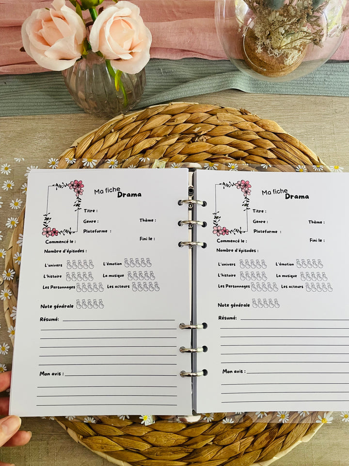 - 18 fiches de dramas recto verso à compléter et à placer comme tu les souhaites dans ton carnet pour garder une trace de chaque drame que tu as regardé