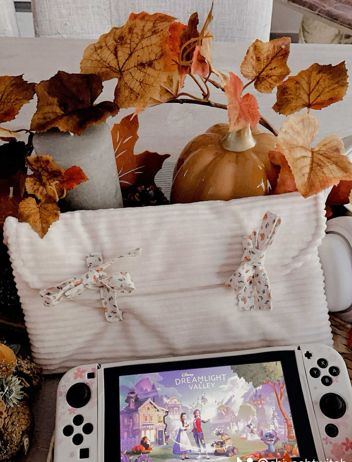 Plonge dans une ambiance douce et réconfortante avec notre pochette Nintendo Switch édition Automne 🍁. Confectionnée à la main avec soin, elle allie praticité et esthétisme cosy, idéale pour protéger ta console avec style.